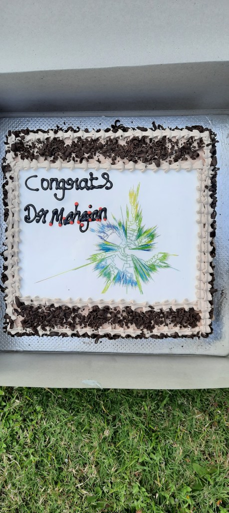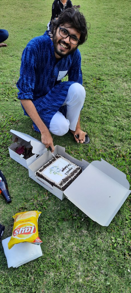Saurabh successfully defended his PhD thesis, for which he analysed patterns and causes of GC content evolution and codon usage across thousands of bacteria. He gave a superb (virtual) talk, and we all celebrated his successes with a custom cake on the lawn. Congratulations, Dr Mahajan!