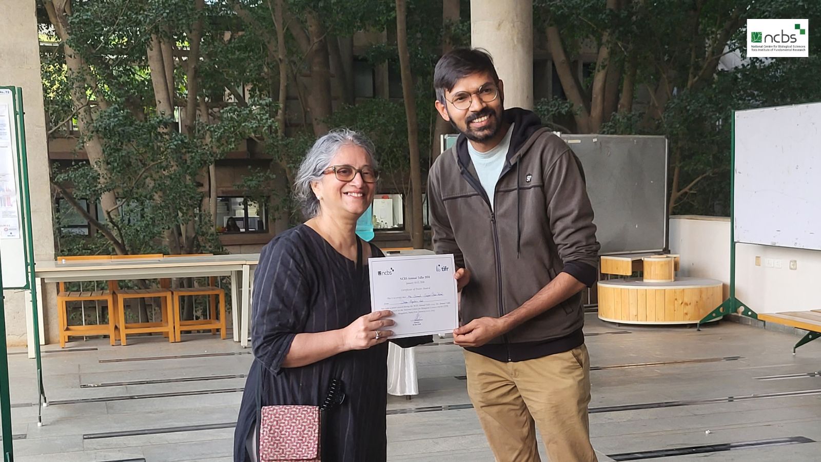 The lab had a great showing at the 2024 NCBS Annual talks, with three exciting posters from Pratibha and Harshith (Ecological drift in the flour beetle gut microbiome), Ruchith and Shazia (Mutation bias and tradeoffs), and Shivansh (The genetic basis of adaptation in flour beetles). These are all fun new stories from the lab that we will be wrapping up soon. Congratulations, Shivansh, for winning a poster prize (pictured here: receiving it from Prof Gita Chadha)!