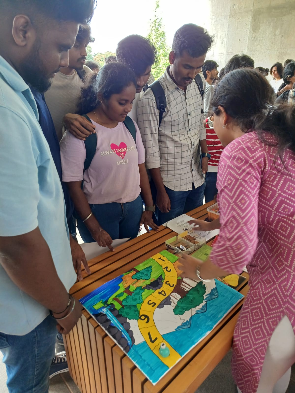 NCBS had an Open day in September this year, where the campus opened to visitors, and several labs put up posters, demos, games and other activities for children and members of the public. The lab put up a stall showcasing activities based on our work, and it was a hit! Featured: a beautiful Mandala highlighting examples of evolution, by former student Pranjal Gupta; a board game conveying the role of bias and chance; a poster explaining how mutations happen; and an array of give-away postcards highlighting recent work from the lab. Several lab members planned, crafted, and interacted with visitors at the booth, and it was a lot of fun.