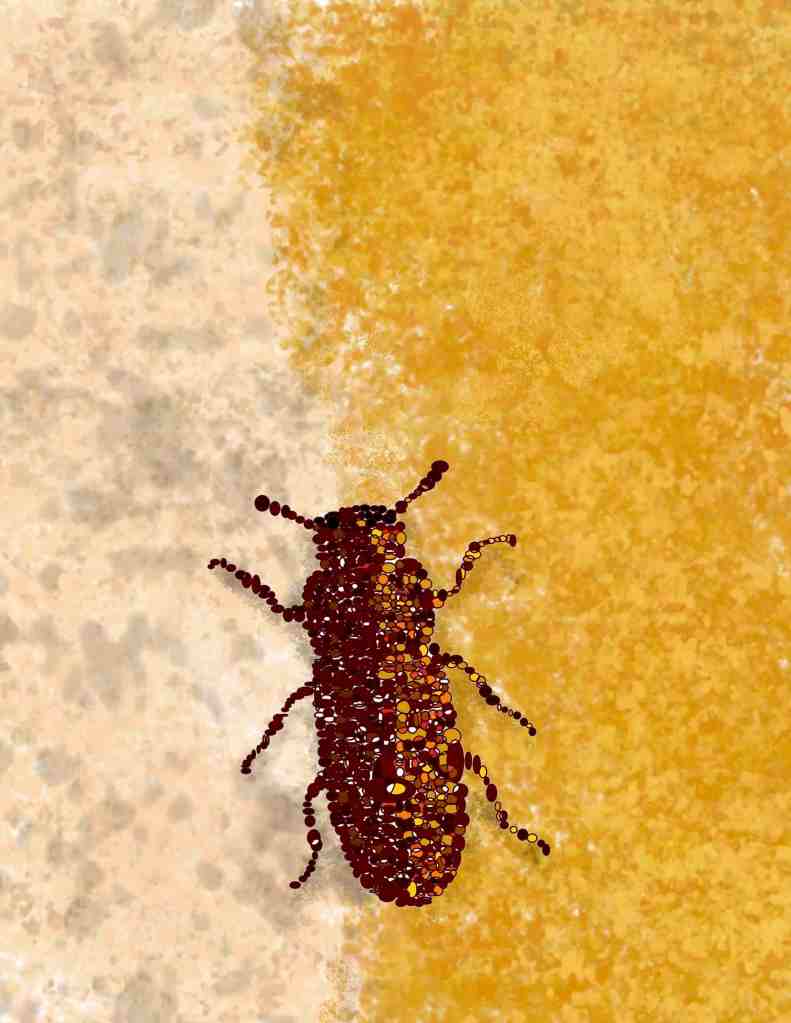 The first set of findings from our long-term beetle populations are now out! In a massive effort, collating data across over 5 years, Vrinda and other lab members monitored flour beetle populations exposed to a new, poor habitat — corn flour — instead of the optimal ancestral wheat flour. While we expected some extinction, nearly all populations managed to avoid this fate, and underwent evolutionary rescue. We find that the founding beetles had an outsized impact on long-term population performance, and we identified specific founder traits that mattered most. Interestingly, the details of evolutionary rescue were not explained by founder traits, and also did not predict long-term performance. So, the causes and effects of the specific dynamics during evolutionary rescue remain an enigma. Read the paper to find more fascinating details and a nice summary article from the NCBS communications team, and enjoy this artwork by Vrinda. Meanwhile, the beetles continue to evolve in the lab, and we look forward to learning a lot more from them.!